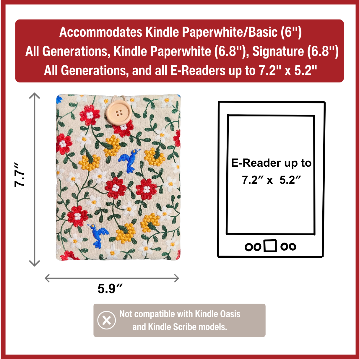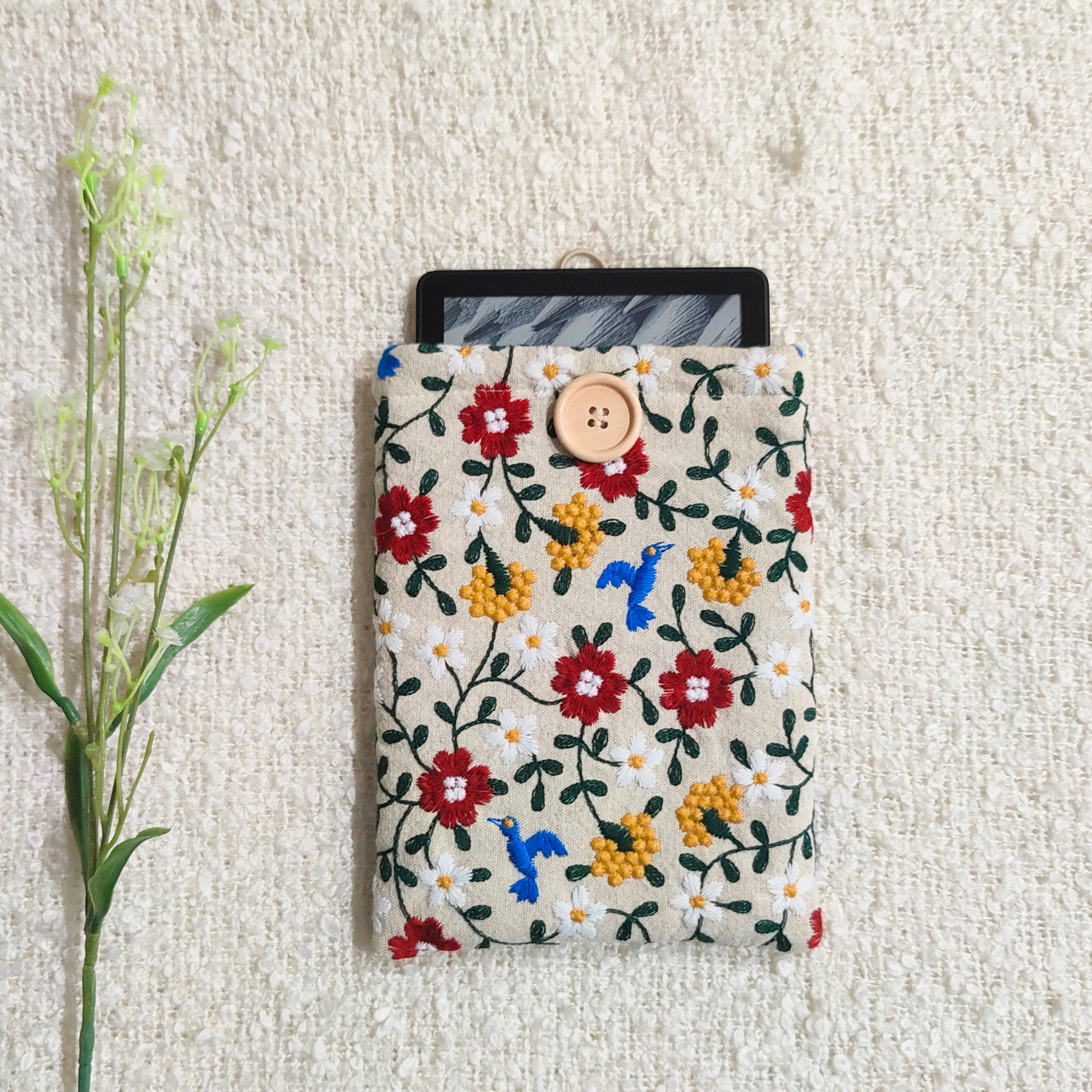 Floral Kindle Sleeve, Embroidered Kindle Cover – Spring Harmony